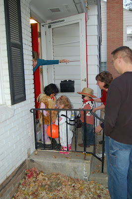 Both Shannon and Sammy had a great time trick-or-treating in our neighborhood. The weather was perfect...dry, in the 60s...the leaves were crunchy under our feet.